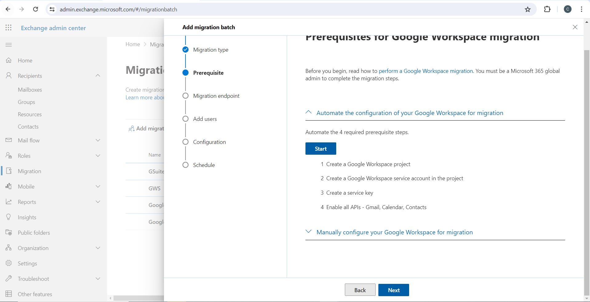 Google tarafındaki hazırlıklar tamamlandıktan sonra, artık Microsoft 365 üzerinde migration işlemini başlatabiliriz.