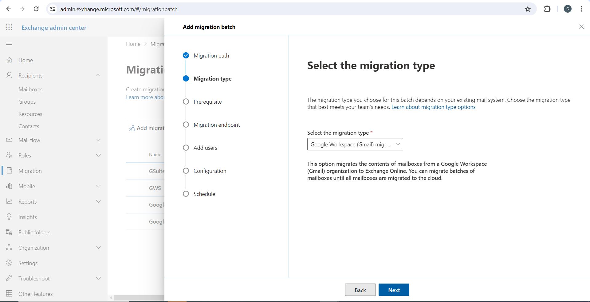 Select Migration Type ekranında Google Workspace (Gmail) Migration seçin ve Next deyin.