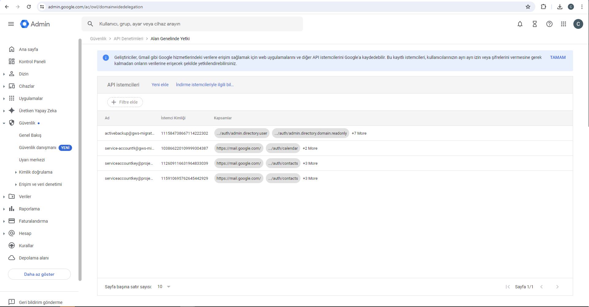 Google Workspace’ten Microsoft 365’e veri taşıma işlemi için, servis hesabının tüm kullanıcılar adına yetkilendirilmiş olması gerekir. Bu adımda Domain-Wide Delegation işlemi yapılır.